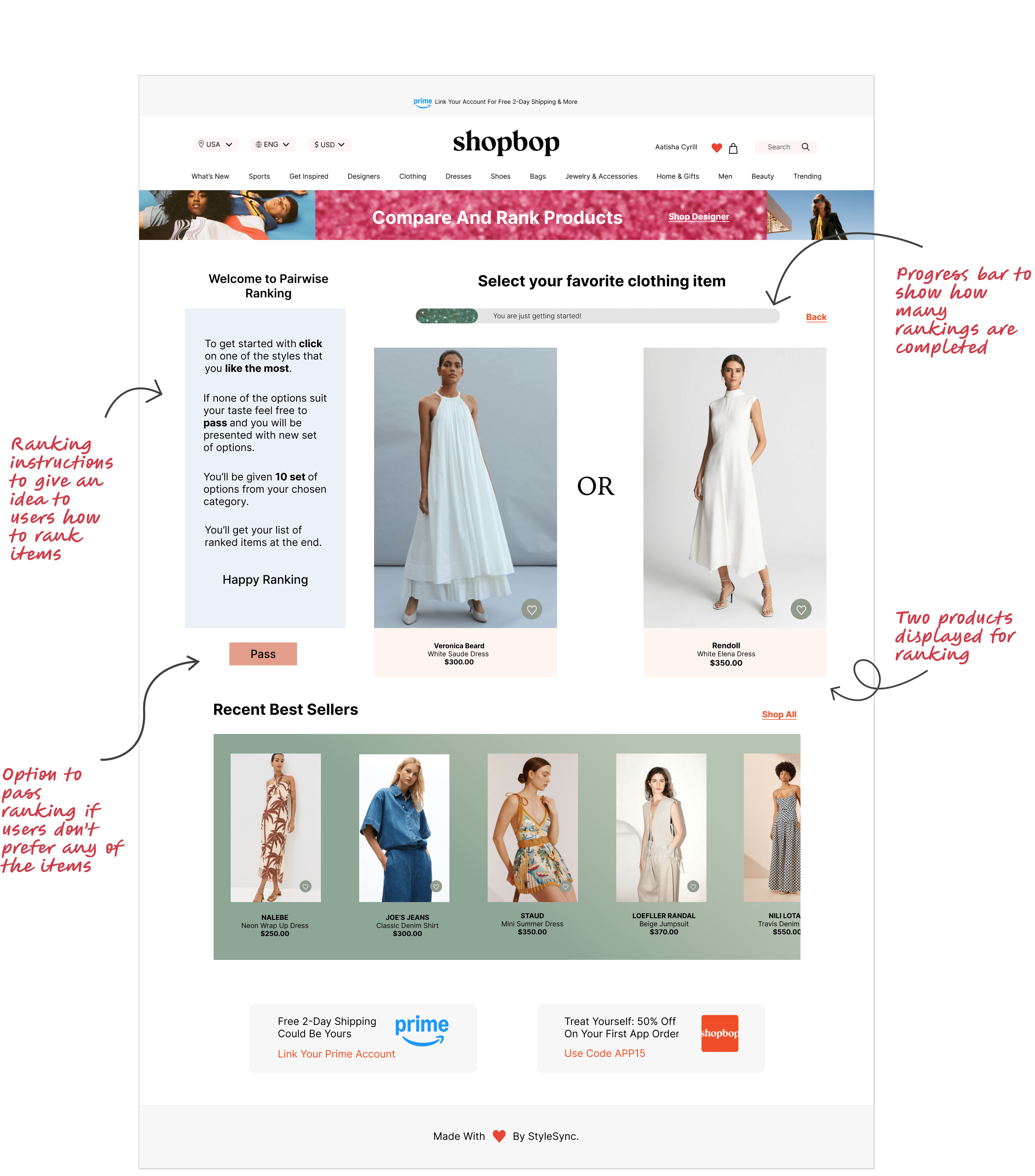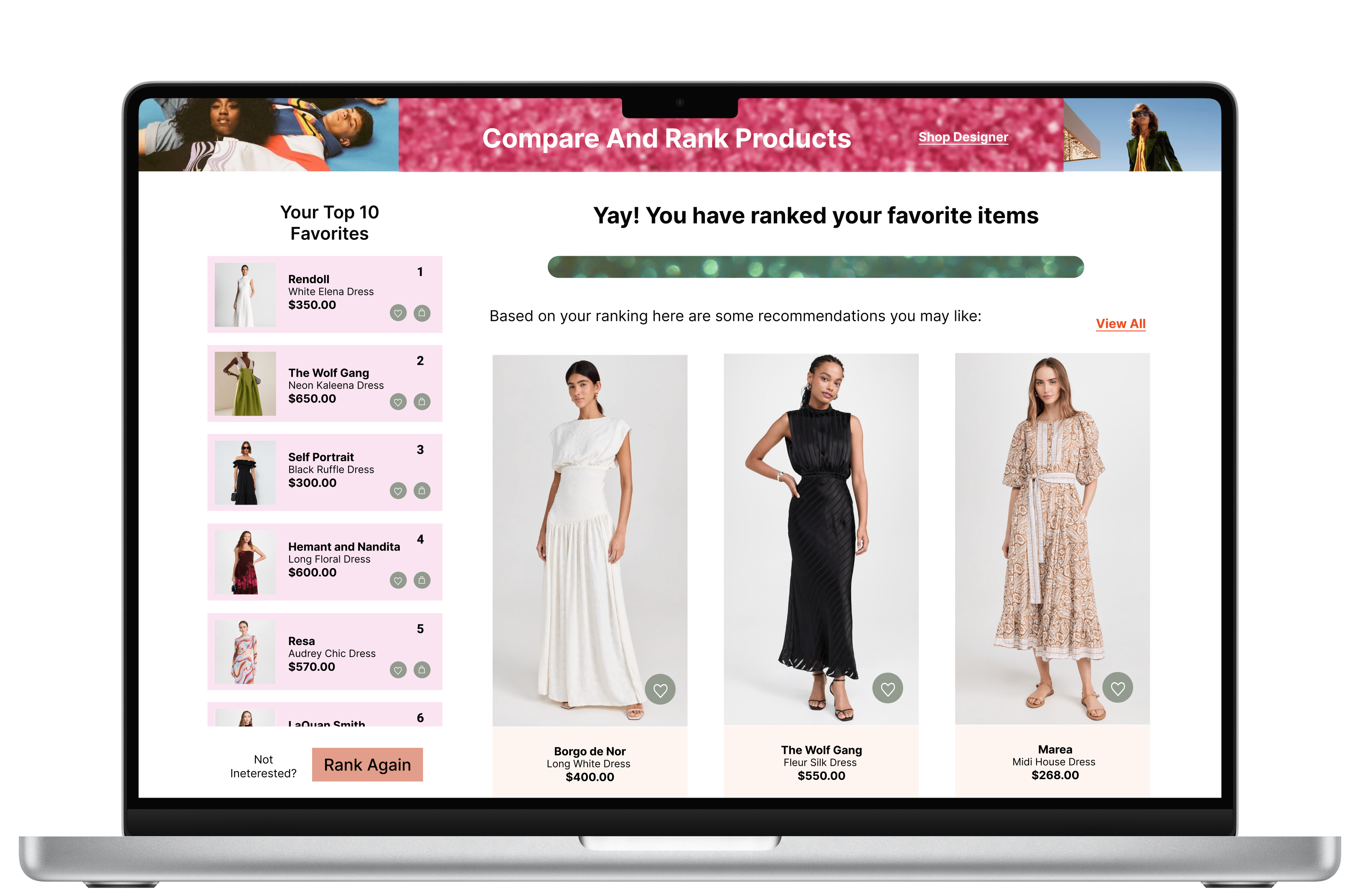 This pairwise ranking system creates an engaging and rewarding shopping experience. Users compare items and rank them to determine their preferences, which helps generate
