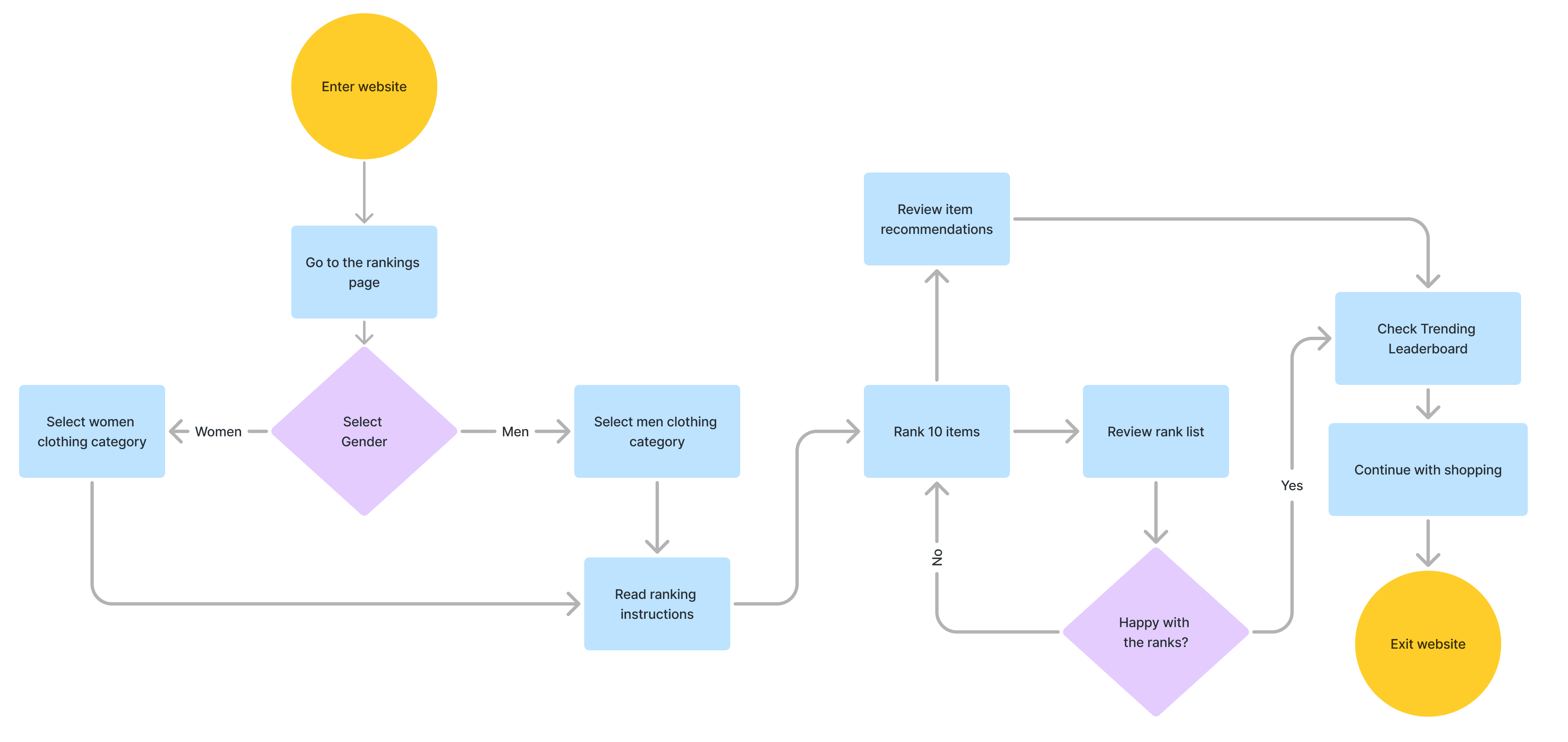 I crafted a workflow for the users to show how to perform the ranking and check the recommendations and the leaderboard. This also involved users to take certain simple decisions to customize their fashion preferences.