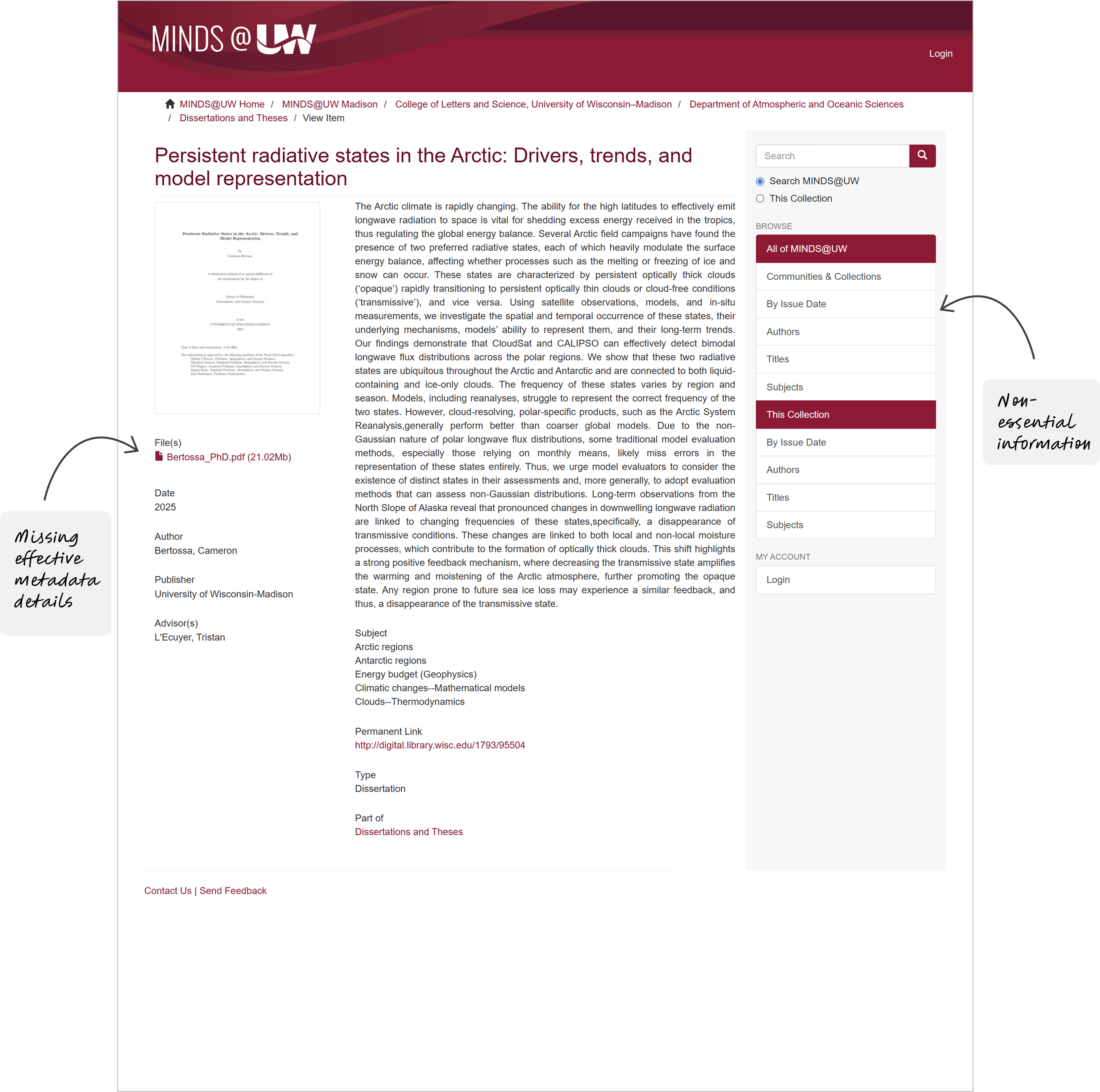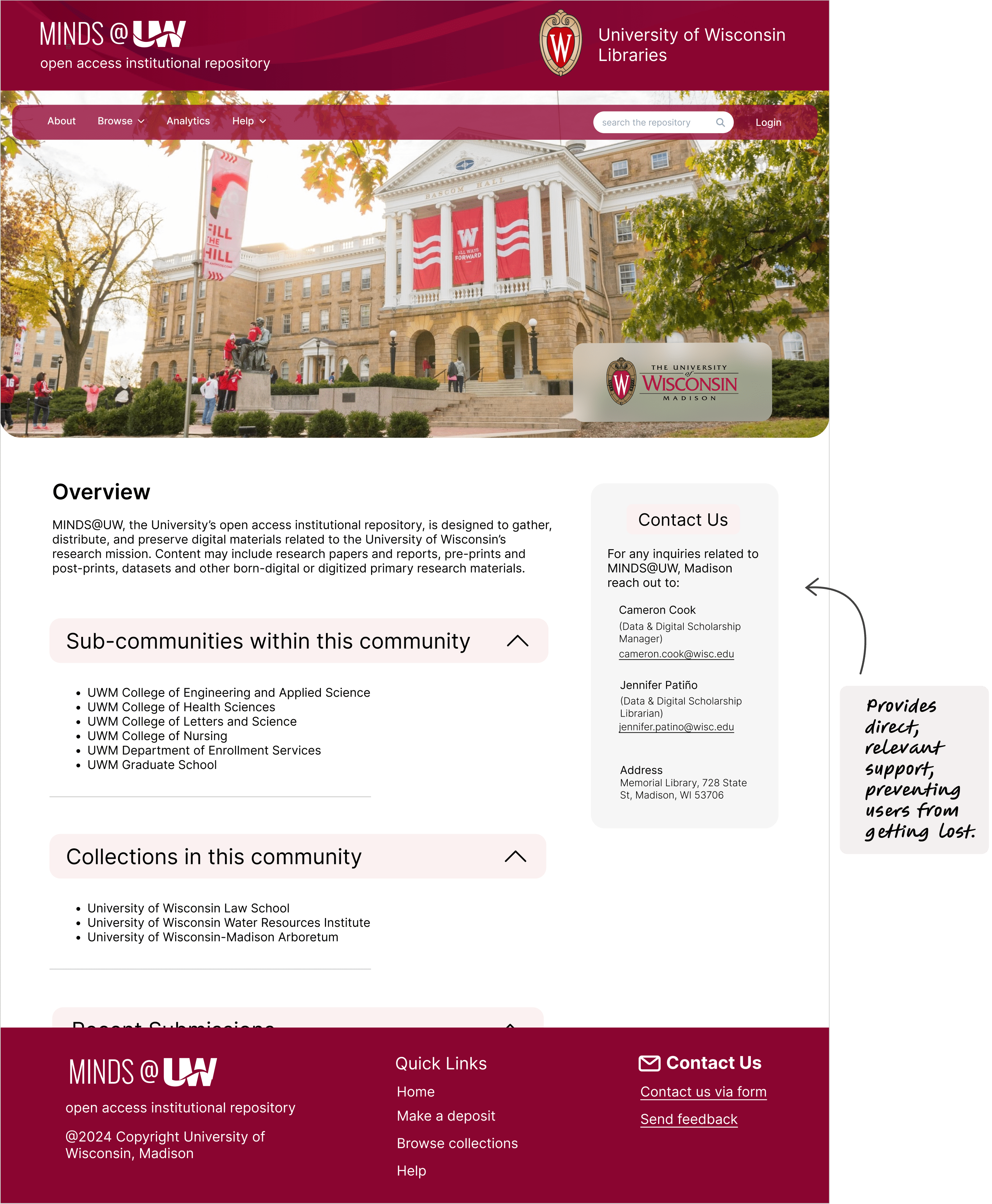 Some things were obvious, like improving how users browse or making submissions easier with clear CTAs. Others needed deeper thinking: how do we highlight the value each UW campus brings, or fix the long-standing confusion around closed collections?