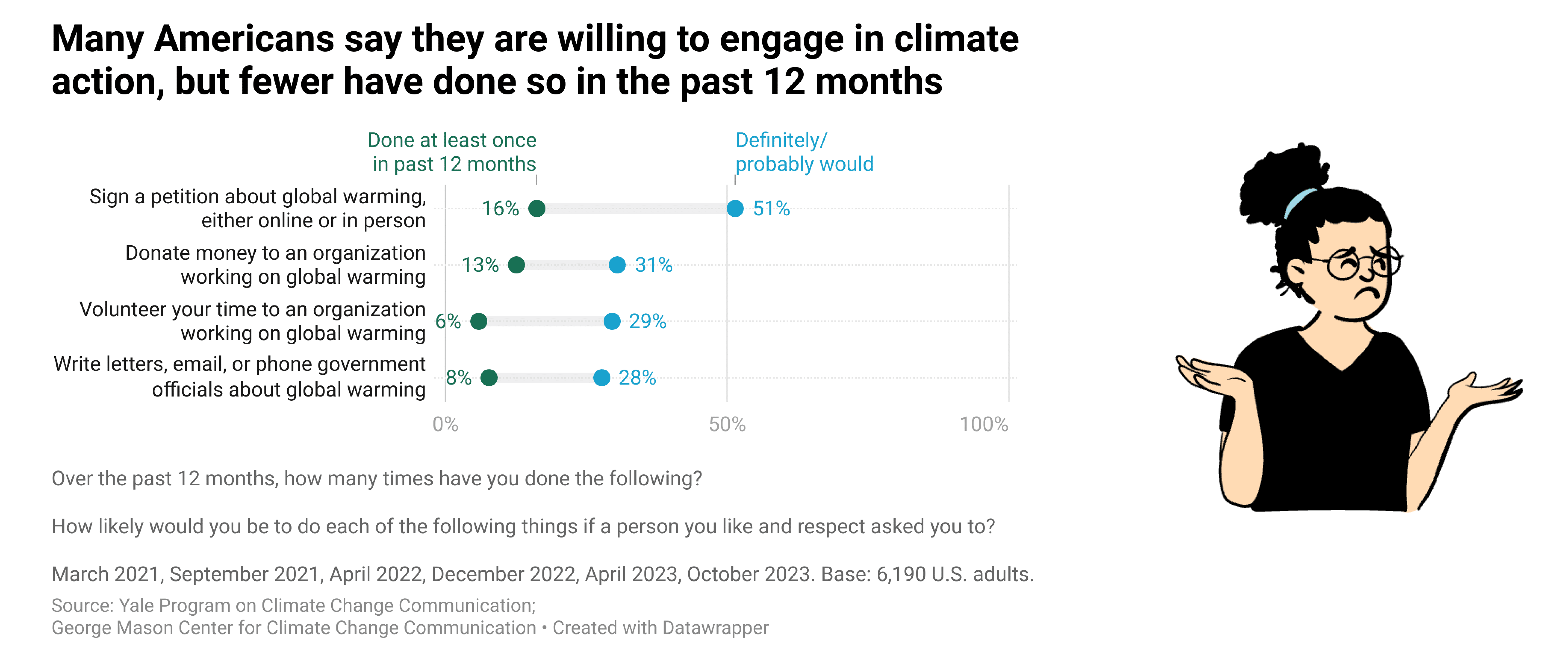 I reviewed studies and statistics on environmental and consumer behavior. The major obstacle to climate action includes psychological, social, and structural/logistical factors. On further digging, I found that there are positive numbers that indicate that young people and digital technologies can be the way to a better future.