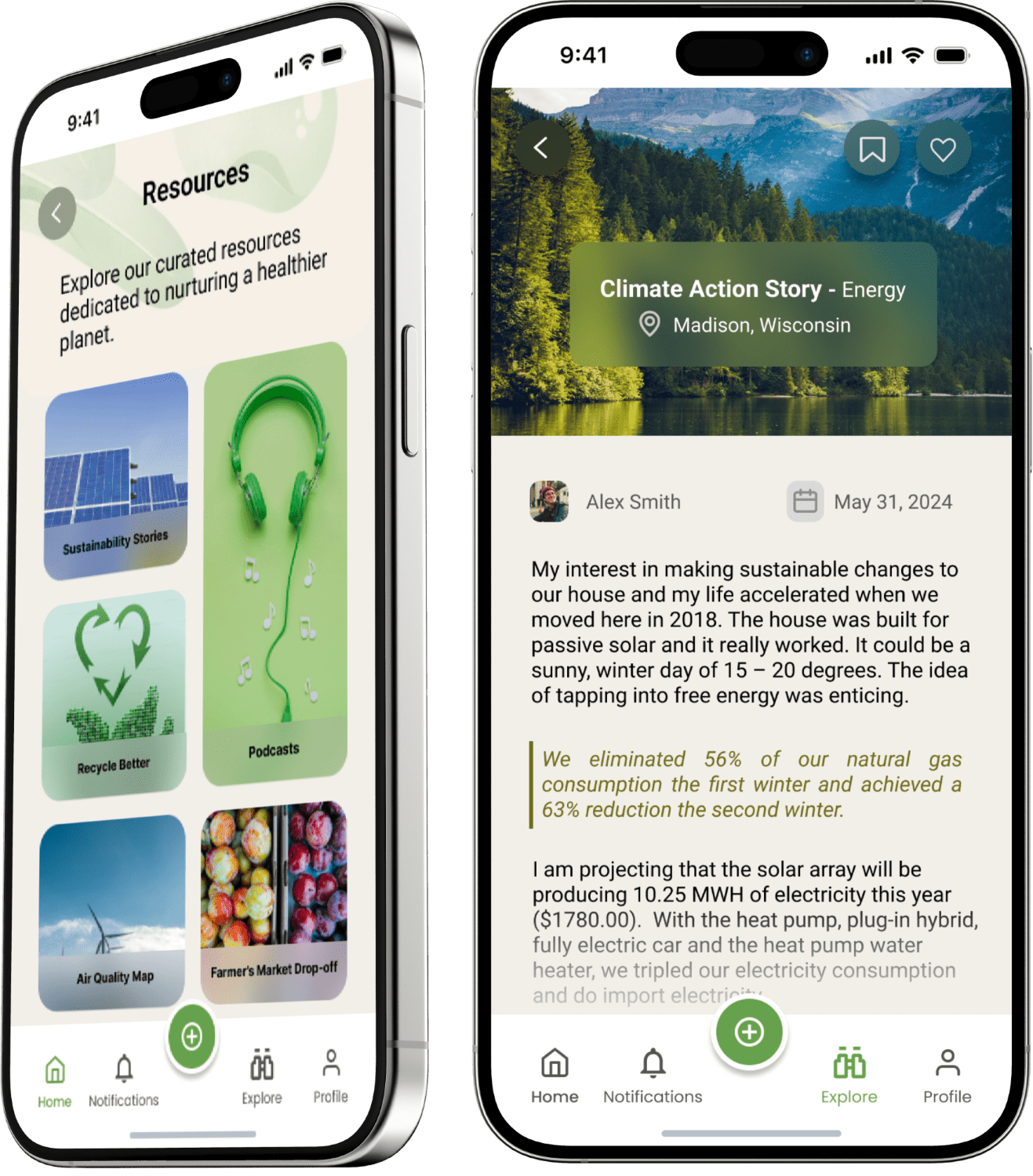 - Explore real-life sustainability achievements, fostering inspiration and connection.