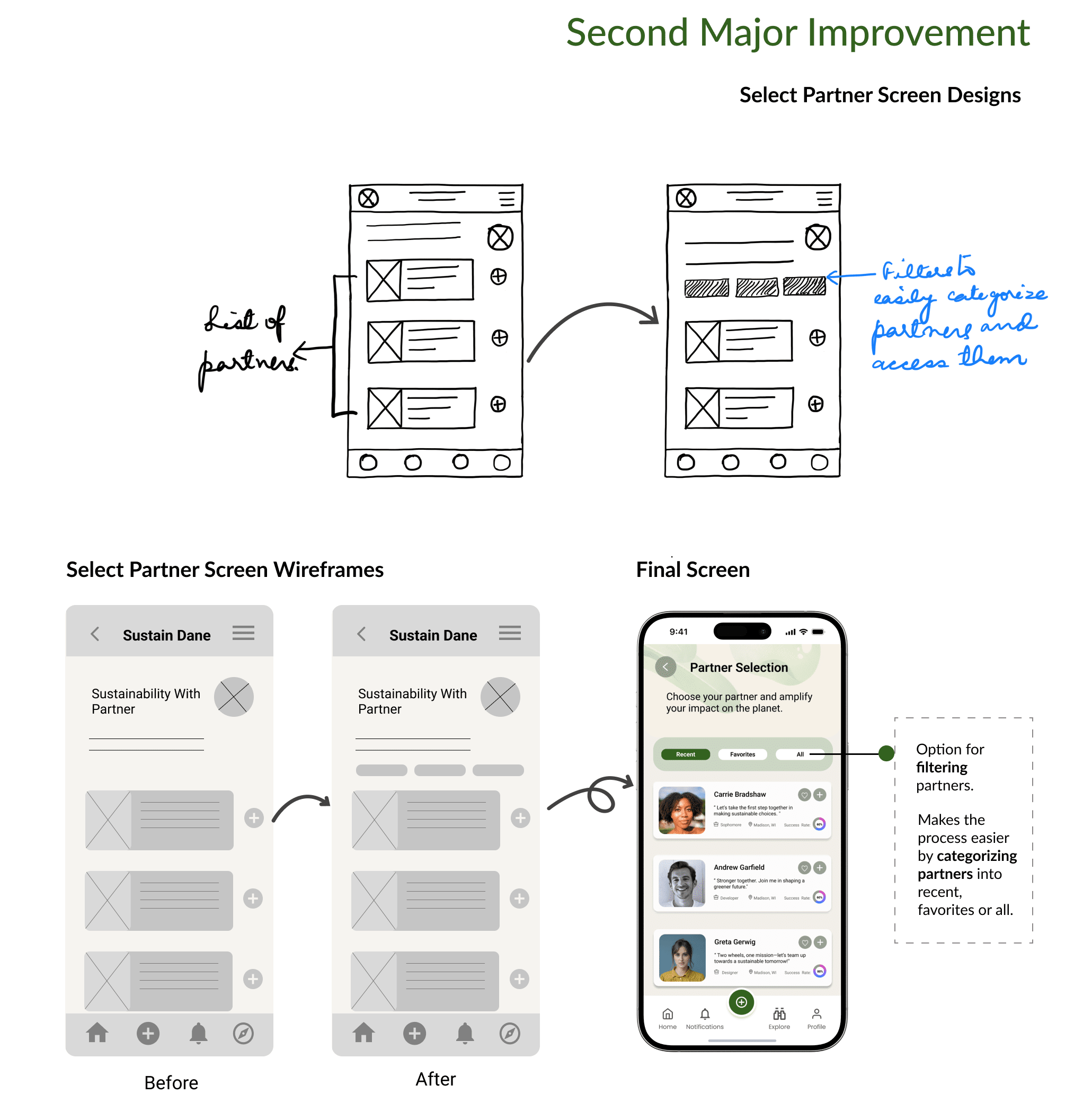 - I introduced filters (e.g., Recent, Favorites, All) so users can quickly jump to the relevant partner list.