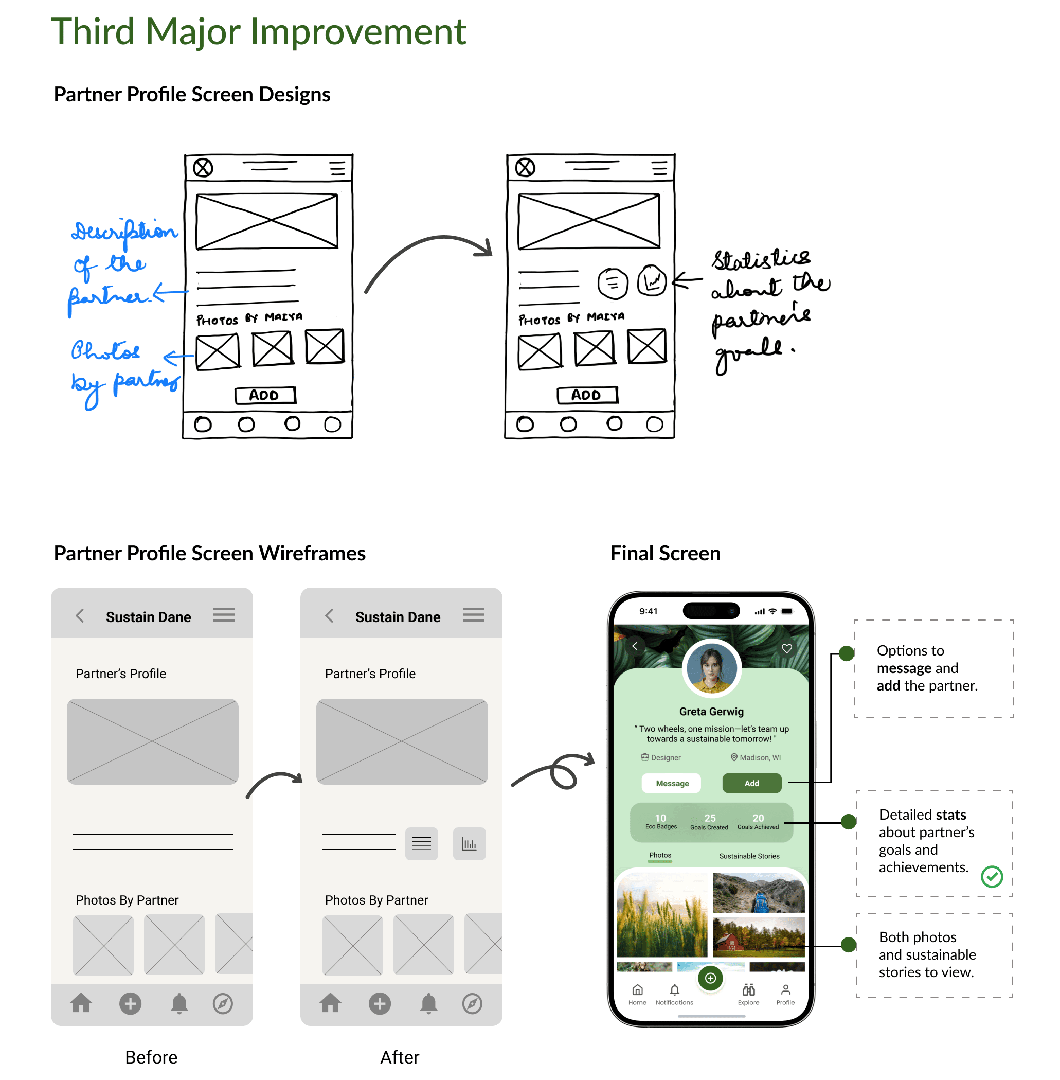 - Participants wanted to see detailed insights about a partner's sustainability goals and progress