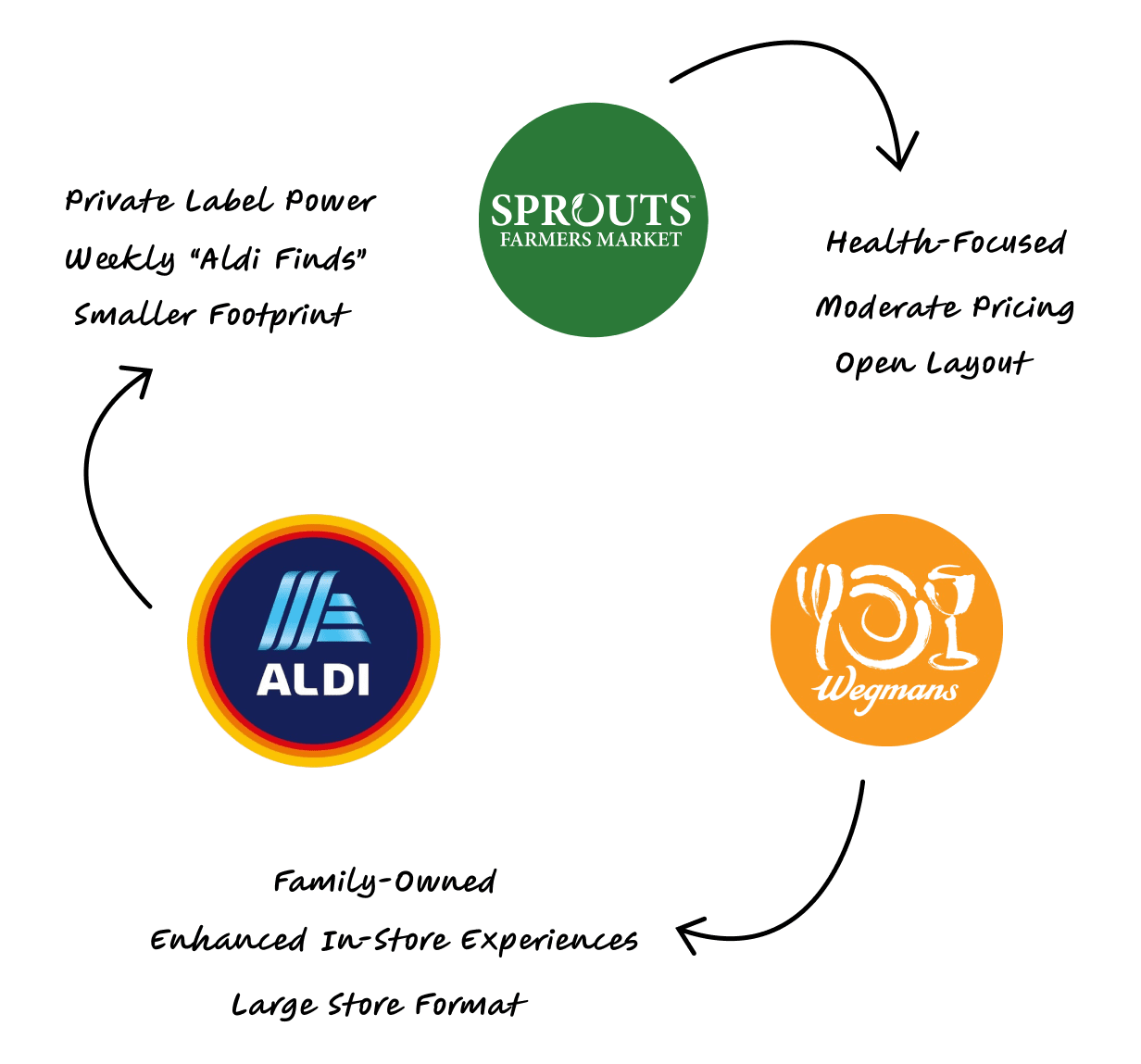 As a team, we wanted to explore grocery brands that prioritize brick-and-mortar experiences and community engagement over e-commerce. Hence, we conducted a comprehensive competitor analysis on three brands: Aldi, Sprouts, and Wegmans to understand what each one offers and identify key lessons Trader Joe's could draw upon: